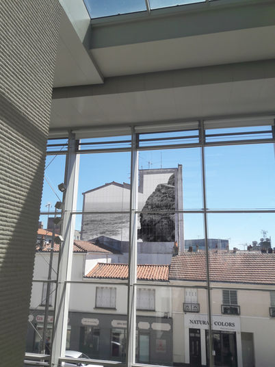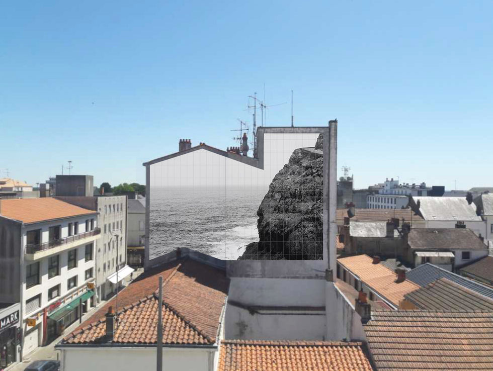 Pour répondre à l’appel à projet de la ville de la Roche-sur-Yon pour la réalisation d’une œuvre graphique sur une façade, j'ai présenté une photographie monumentale en noir et blanc d'un paysage marin. Cette photo serait imprimée sur des carreaux en grès cérame. Cette technique permet de garder une très grande fidélité de l’image imprimée et pérennise l’œuvre dans le temps quand il s'agit d'une installation extérieur. Pour cet appel à projet, j'ai été troisième finalistes. L'une des demandes principales du projet était de créer un lien entre l’œuvre, la ville et le pôle culturel du Cyel se trouvant en face de cette façade. Cette fresque de 100m² est une tentative de voir la mer en ville avec différents points de vue (de la rue ou en hauteur), de voir un paysage naturel familier qui offre une respiration et nous suspend, le temps de voir l'horizon.